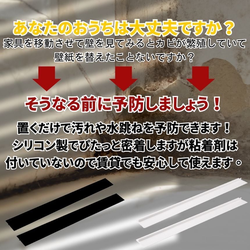 壁の隙間にぴったりフィットで、水はねやホコリ、小物の落下を防ぐことができます。