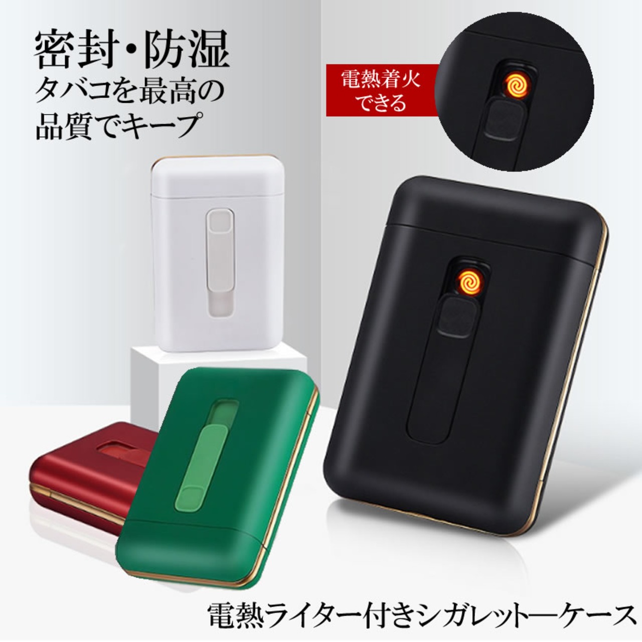 タバコ ケース シガレットケース 煙草 ライター シガー ボックス 電子 電熱 ガス オイル 不要 火 着火 シガレット 箱 20本 メンズ レディース おしゃれ