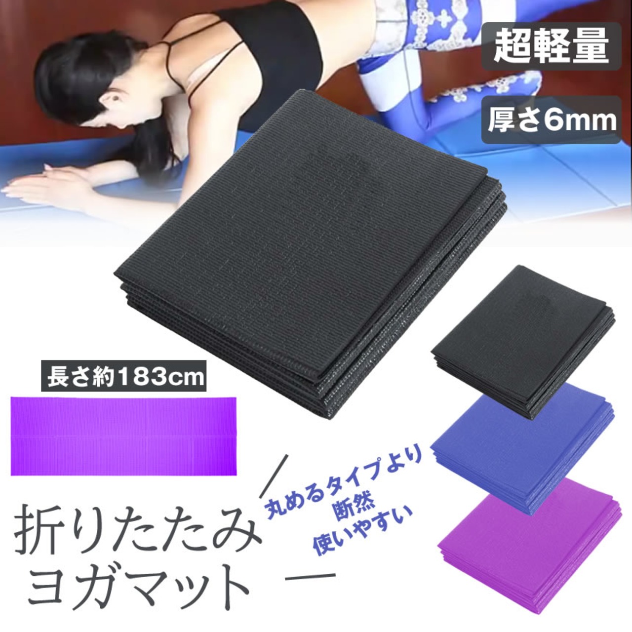 ヨガマット 折りたたみ 厚手 幅広 6mm トレーニングマット 滑り止め ヨガ マット 折り畳み エクササイズマット ストレッチマット コンパクト ピラティス