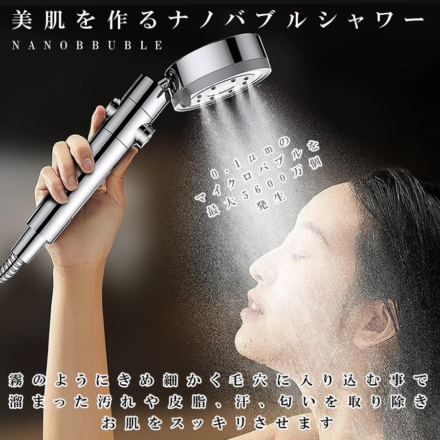 【 極上のナノミスト 】 シャワーヘッド 節水 ミスト 塩素 除去 マイクロナノバブル ナノバブル 水流 高水圧 手元止水 手元スイッチ 5段階 モード 角度回転 水圧調整 浄水 シャワー アダプター付き 汎用 G1/2 取付簡単 美容 節水シャワーヘッド 美肌 保湿 お風呂