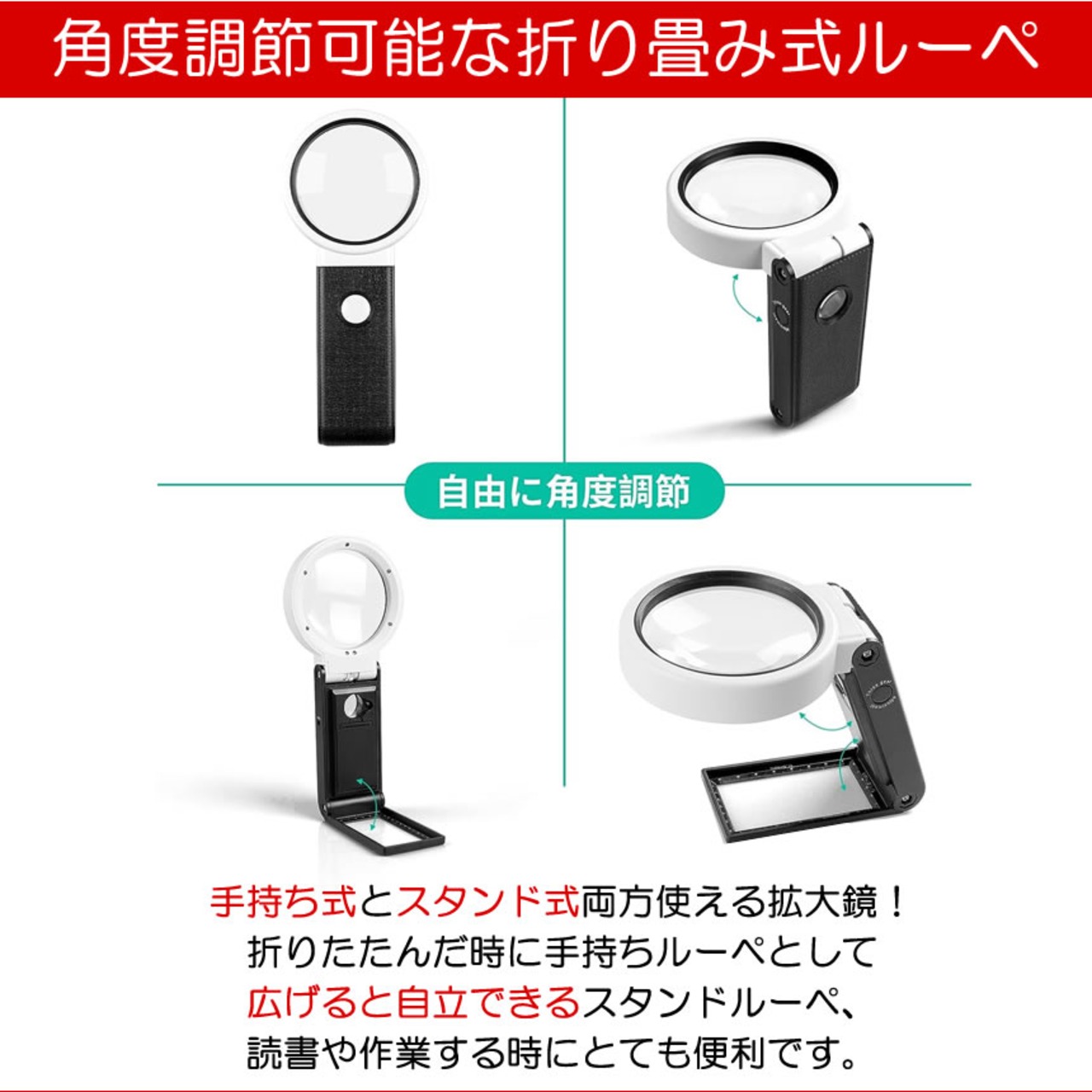 適角度調節可能、手持ち式とスタンド式両方使える拡大鏡!