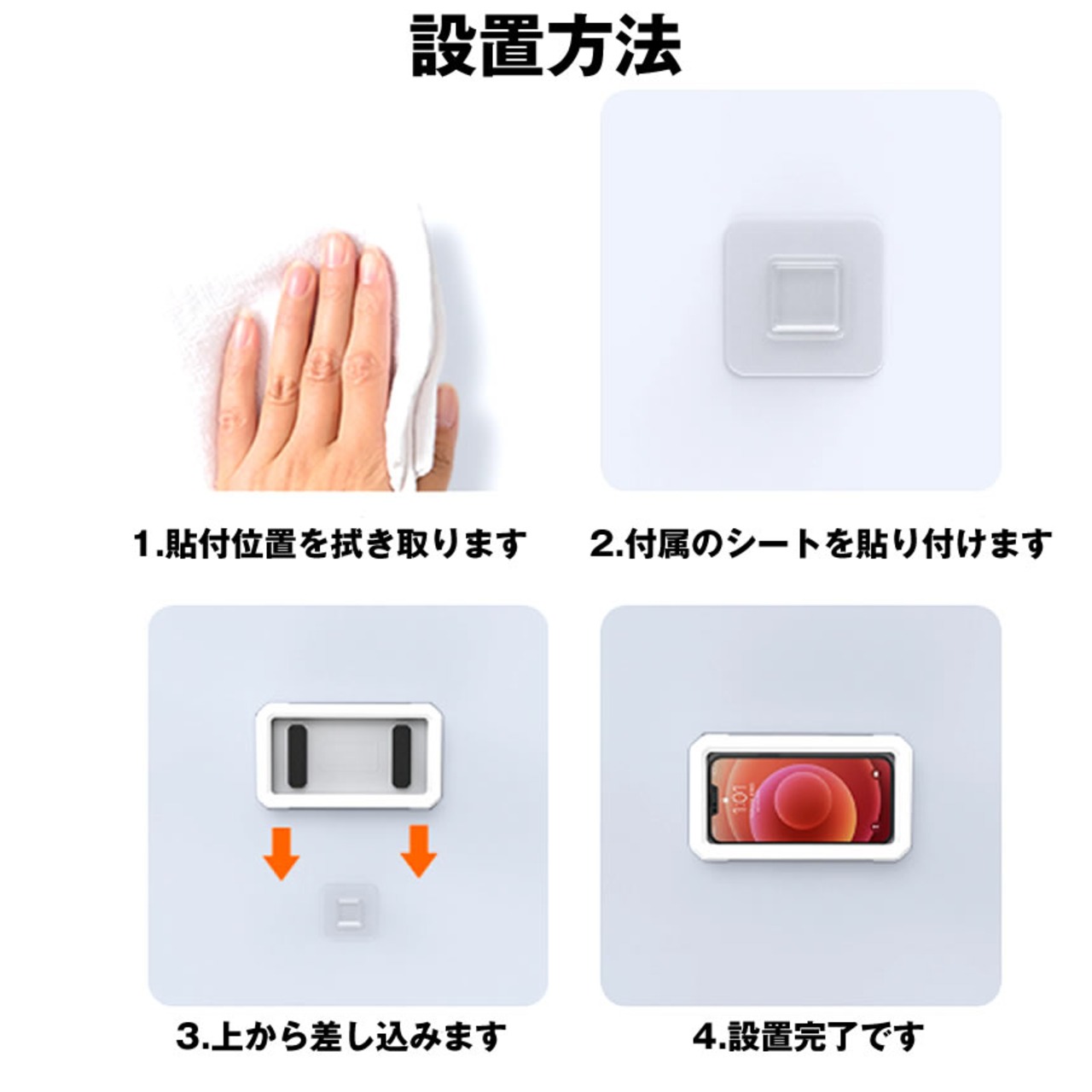 ※スマホケースを取り付ける壁をしっかり拭いてからシールを貼り付けてください。