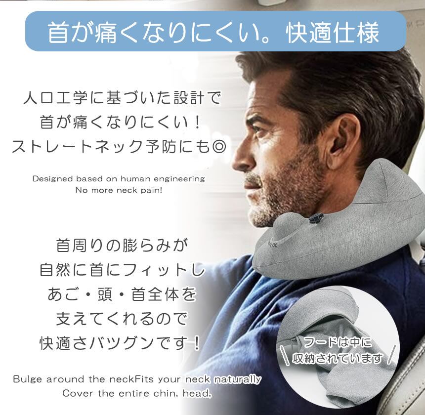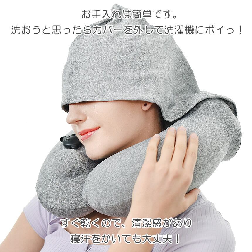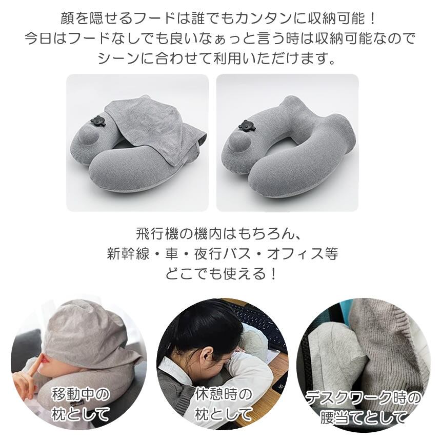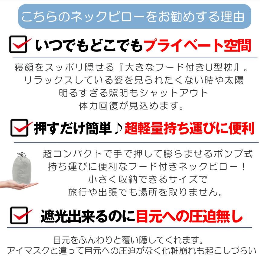 【 簡単 持ち運び 】 ネックピロー 飛行機 フード付き 帽子付き ネック ピロー ネッククッション 首枕 コンパクト 小型 携帯 便利 ポンプ式 洗える 枕 携帯枕 エアーピロー エアー u型 収納ポーチ付 まくら 車 海外 旅行 昼寝 仮眠 トラベルグッズ 便利グッズ 快適グッズ