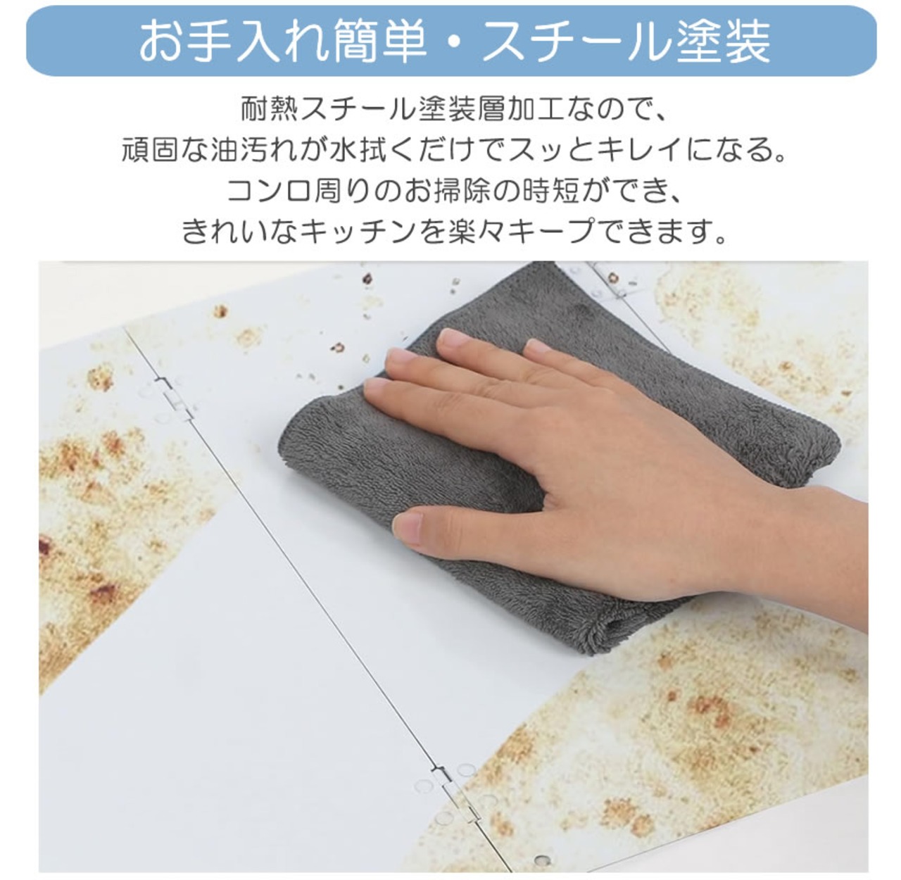 表層は耐熱ピアノ塗装層で、油汚れが吸着しにくくなります。
