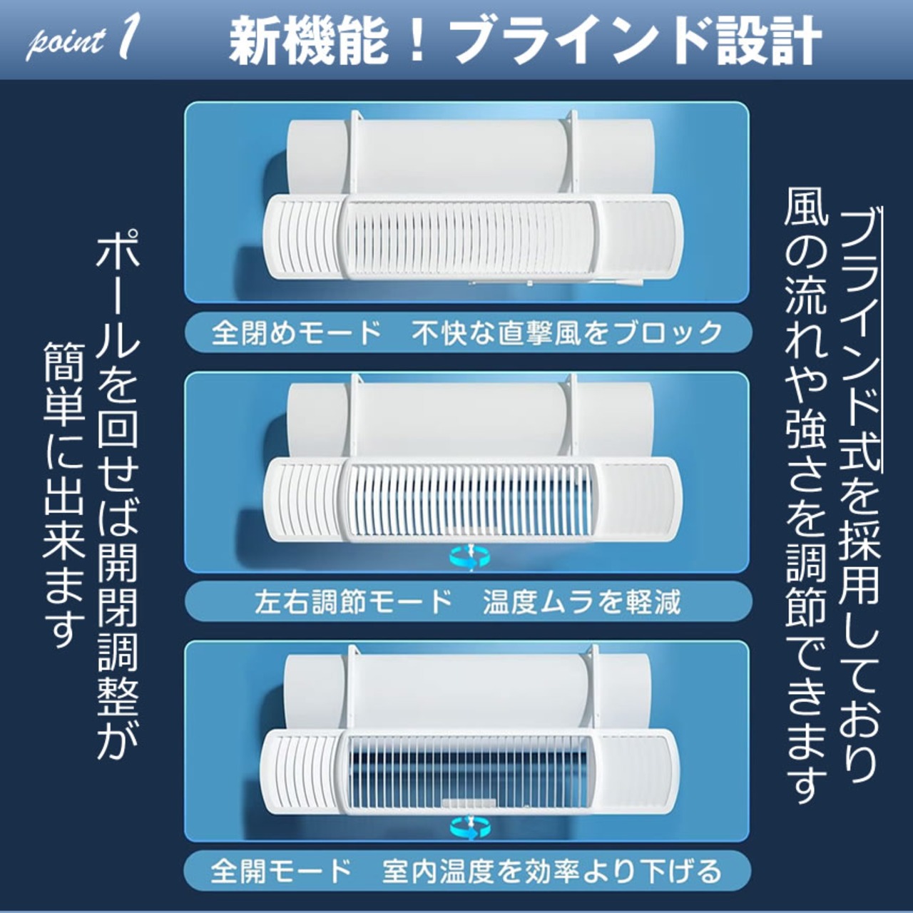 従来の風除けにブラインド機能が追加されたエアコン風よけカバー