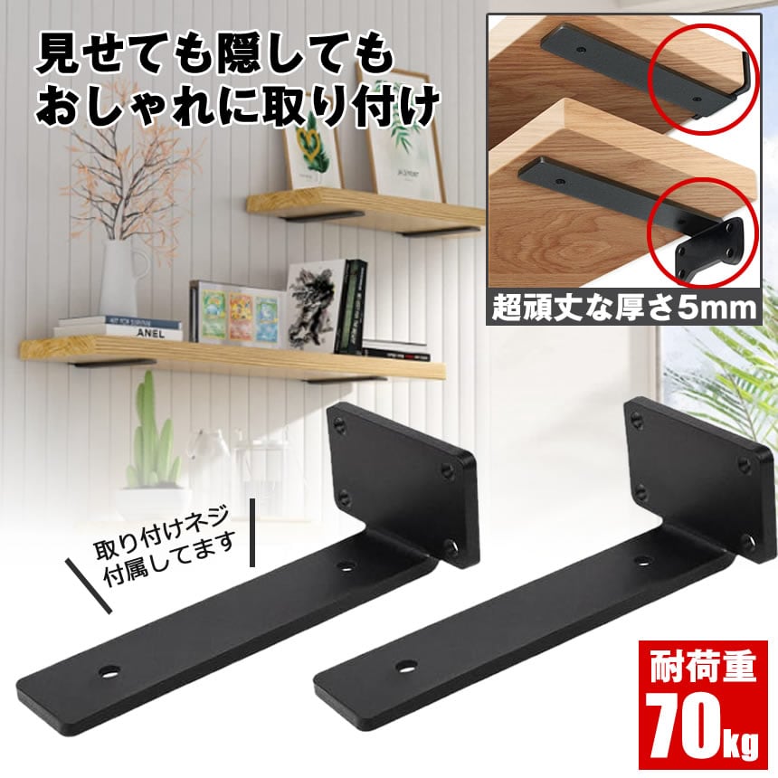 棚受け 棚受け金具 アイアン ブラケット 金具 25cm 2個セット 棚 ラック ウォール シェルフ スタンド ブラック 本棚 隠し棚受け アイアンブラケット アングル