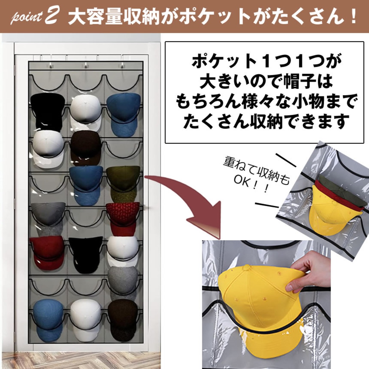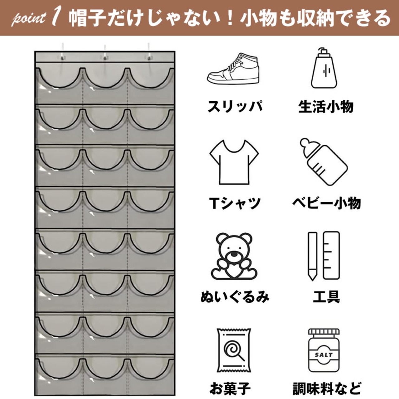 カーブポケットは取りやすく、帽子や小物を簡単に整頓しておくことができます。