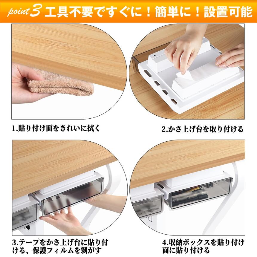 引き出し 机 下 後付け 収納ボックス 収納ケース デスク下 テーブル下 収納 ケース 仕切り 隠し ミニ 小物入れ 机下収納 簡単取り付け 工具不要 両面テープ