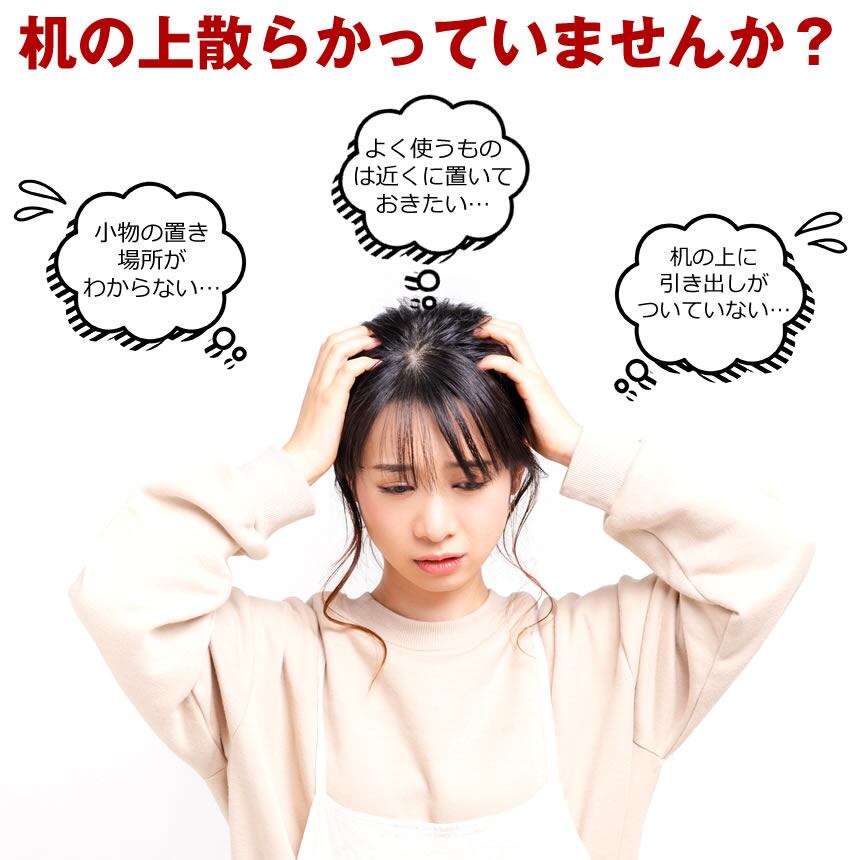 机の下に設置して、さまざまな小物を収納することができ、今まで置き場所が