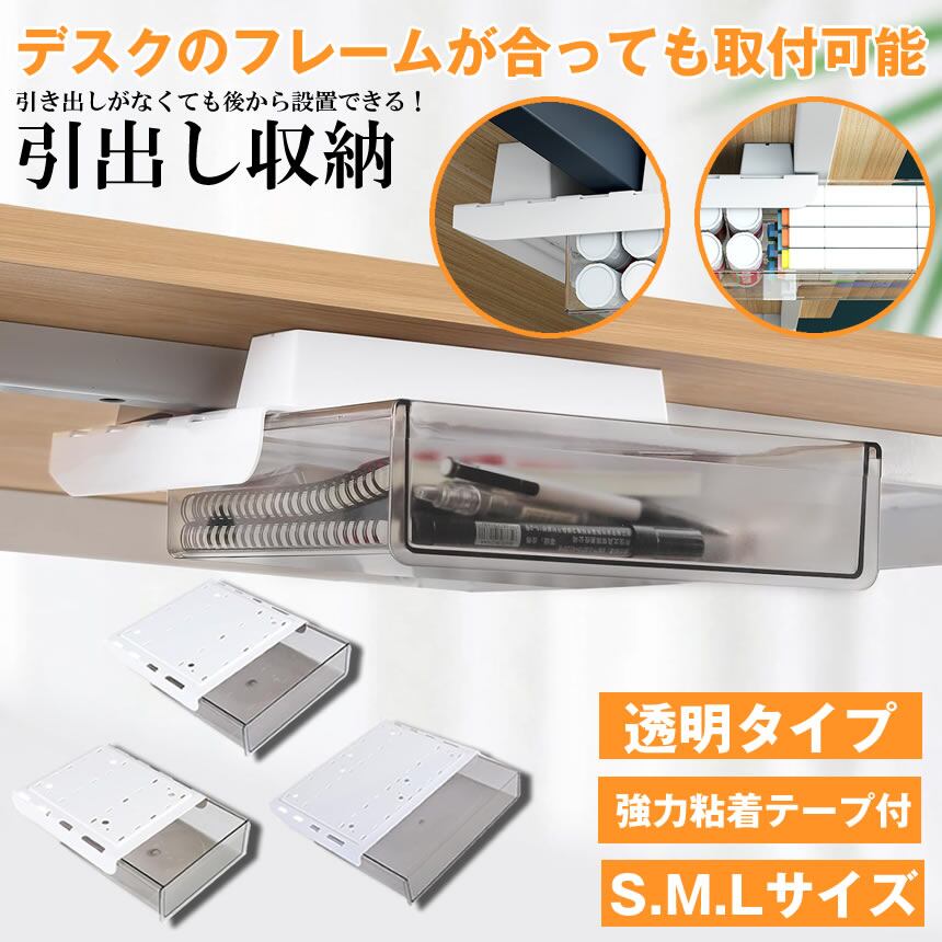 引き出し 机 下 後付け 収納ボックス 収納ケース デスク下 テーブル下 収納 ケース 仕切り 隠し ミニ 小物入れ 机下収納 簡単取り付け 工具不要 両面テープ