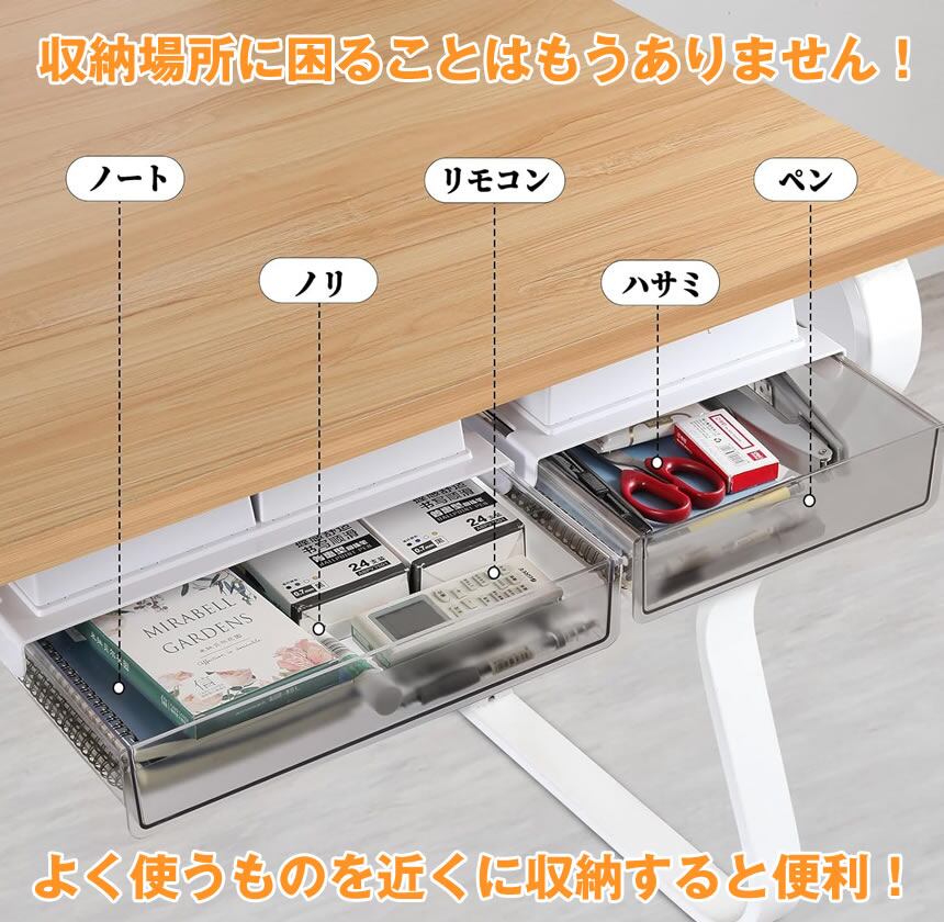 机の下に設置して、さまざまな小物を収納することができ、今まで置き場所が
