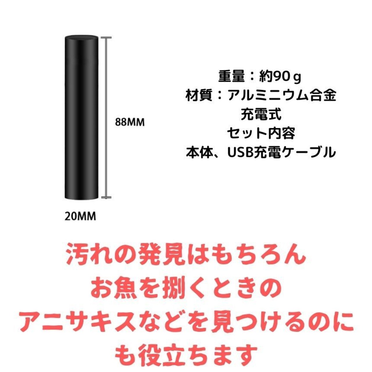 お札やクレジットカード等の鑑定、ペットが皮膚病に感染の確認、UVレジン硬化、宝石・鉱物の検査、骨董の修復の鑑定、服や化粧品に含まれる蛍光増白剤の検索、サソリを捉え、夜釣りなど多様なシーンでお使い頂けます。