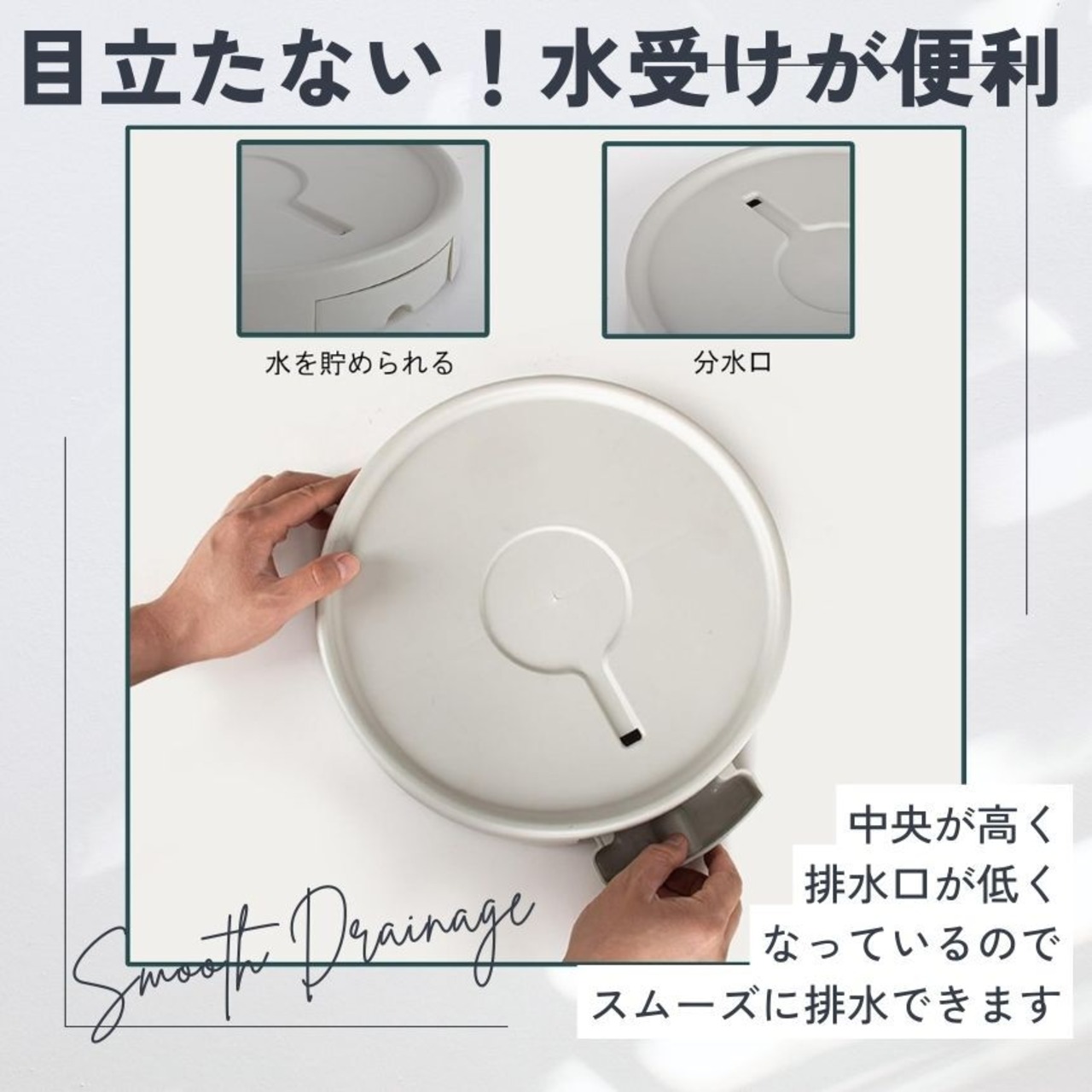 排水トレーに水が流れていくため根腐れを防ぎます。