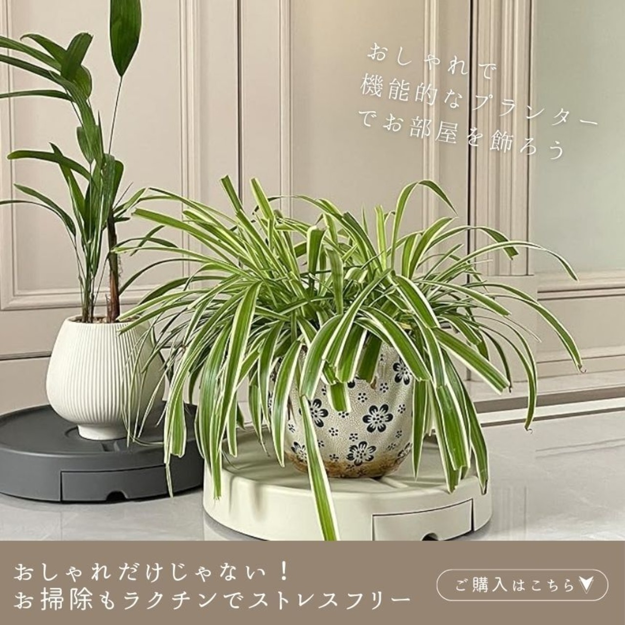 日当たりの向きを変えたり、掃除の際などにも楽に動かすことができ、大変便利です。