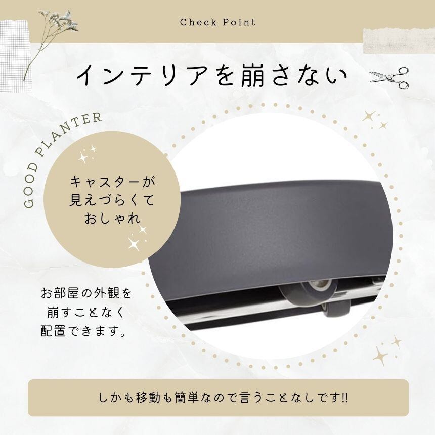 日当たりの向きを変えたり、掃除の際などにも楽に動かすことができ、大変便利です。