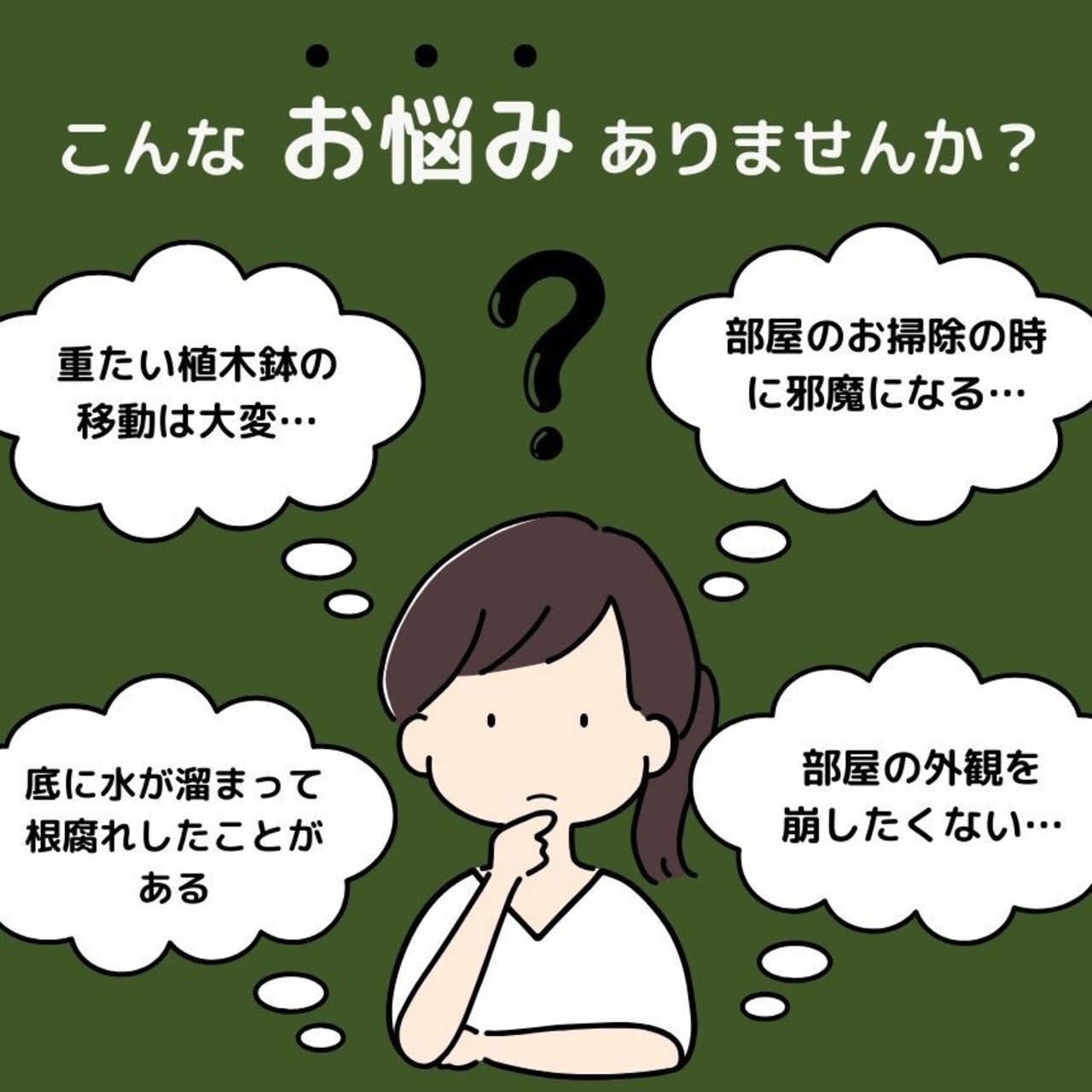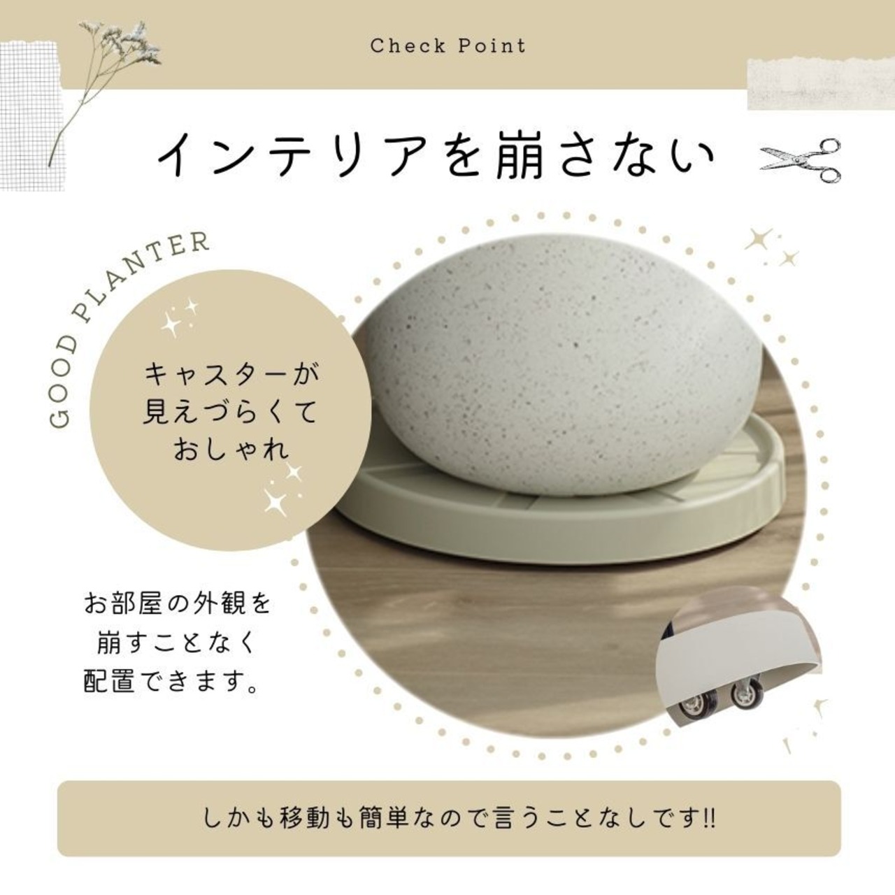 日当たりの向きを変えたり、掃除の際などにも楽に動かすことができ、大変便利です。