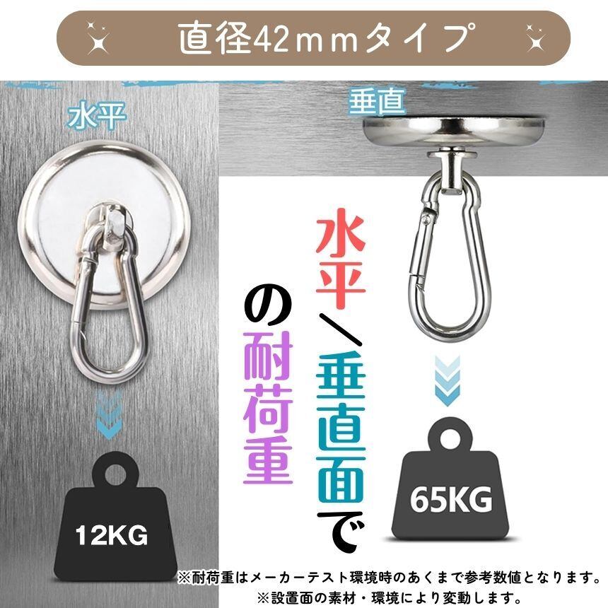 カラビナ マグネット フック シェード 強力 マグネットフック サンシェード オーニング カラビナ付磁石 磁石 超強力 垂直耐荷重65kg お風呂 浴室 オフィス 収納