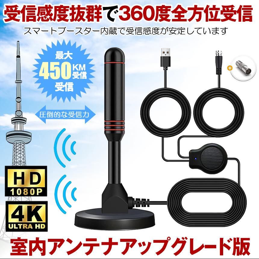 室内アンテナ テレビ TV 最強 テレビアンテナ 地デジアンテナ 地デジ 信号 ブースター内蔵 4K HD TV 450KM受信 360度全方位受信 アンテナ 車載 磁力 室内 屋外