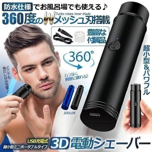 髭剃り 電動シェーバー 電気シェーバー メンズ ヒゲソリ ミニ 小型 防水 お風呂 持ち運び 携帯 便利 旅行 出張 車内 乾湿両用 ヘッド水洗い 回転式 電池残量LED