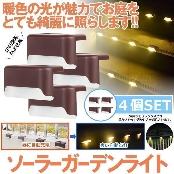 ソーラーライト 4個セット 屋外 暖色 ガーデンライト ソーラー 庭園灯 階段ライト 防水 自動点灯 LED 外灯 飾り用 ガーデン 庭 階段 玄関 4-STEPLIGHT
