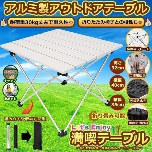 満喫テーブル シルバー アルミ製 ロールテーブル 折畳み キャンプ用品 アウトドアテーブル 耐荷重30kg 収納袋付 おりたたみ MANTABLE-SV