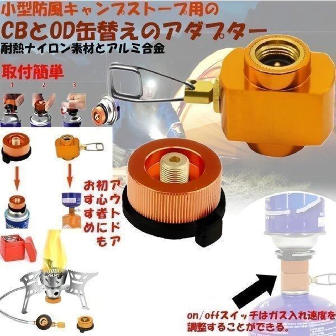 「使用用途」:ガス缶変換でガスボンベ代を節約します。釣りや登山、キャ ンプなどで大活躍なガス缶変換アダプターです。