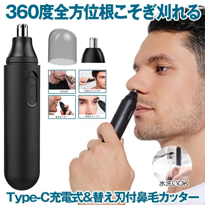 鼻毛カッター 充電式 TYPE-C 電動 男性用 男性 女性 女性用 メンズ 水洗い 替え刃 付 エチケットカッター 鼻毛 眉毛 耳毛 カッター 処理 鼻毛シェーバー