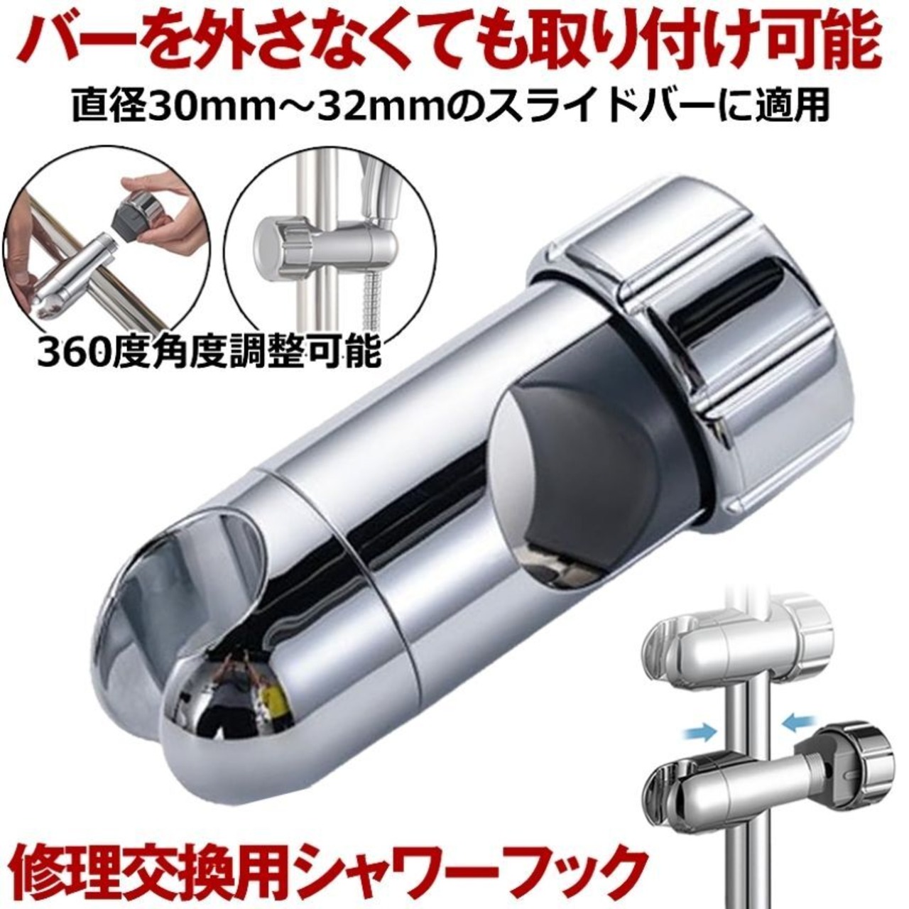 【取付まじ簡単】シャワーフック シャワーヘッドホルダー シャワーホルダー スライド シャワー フック スライドバー ラック シャワーヘッド 28mm-32mm 対応 ホルダー 交換用 穴あけ不要 取り付け 交換 風呂 シャワールーム おしゃれ 壁 バス ウォール 浴室 浴槽 キッチン