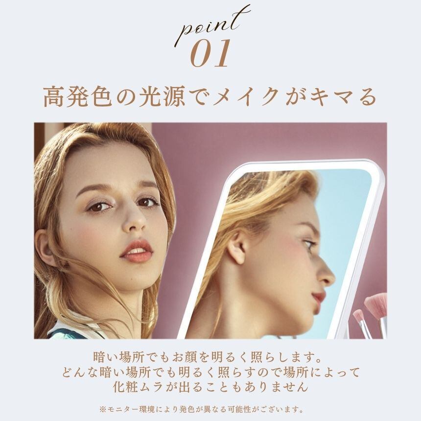 明るさ無段階調整&高発色で無段階調整のLEDライトにより、暗い場所でもお顔を明るく照らします。