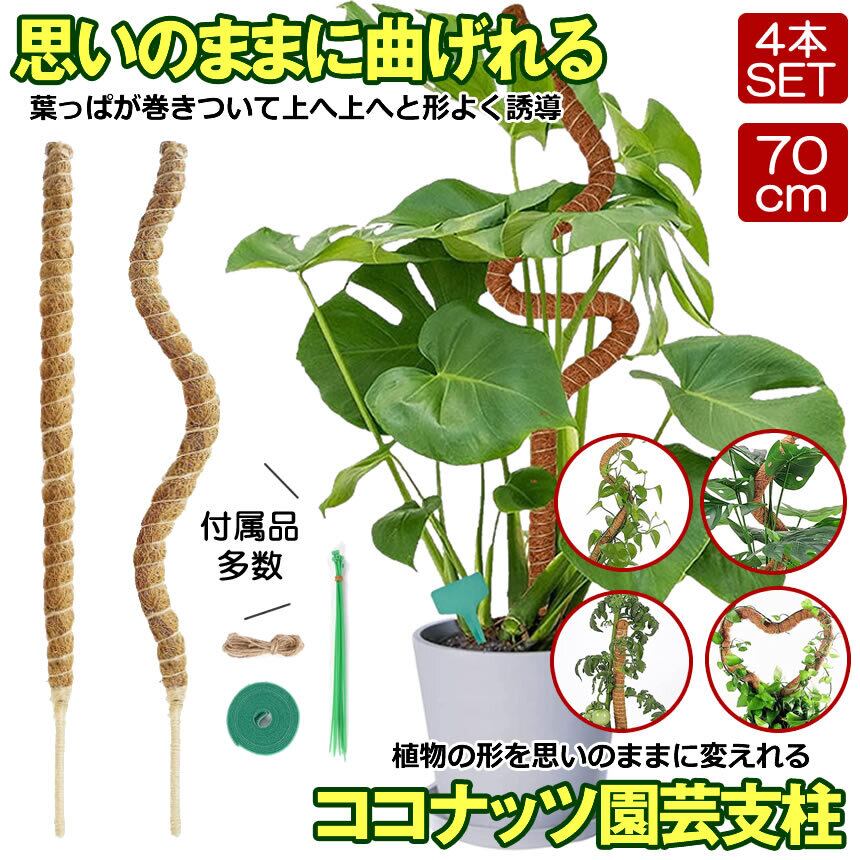 モンステラ 支柱 曲げられる ココスティック 4本 入り 観葉植物 モンステラ支柱 園芸支柱 モスポール 植物 ガーデニング用 ココナッツ支柱 植物サポート 70cm ポトス 園芸 園芸用 園芸用品 ココナッツ フラワースタンド