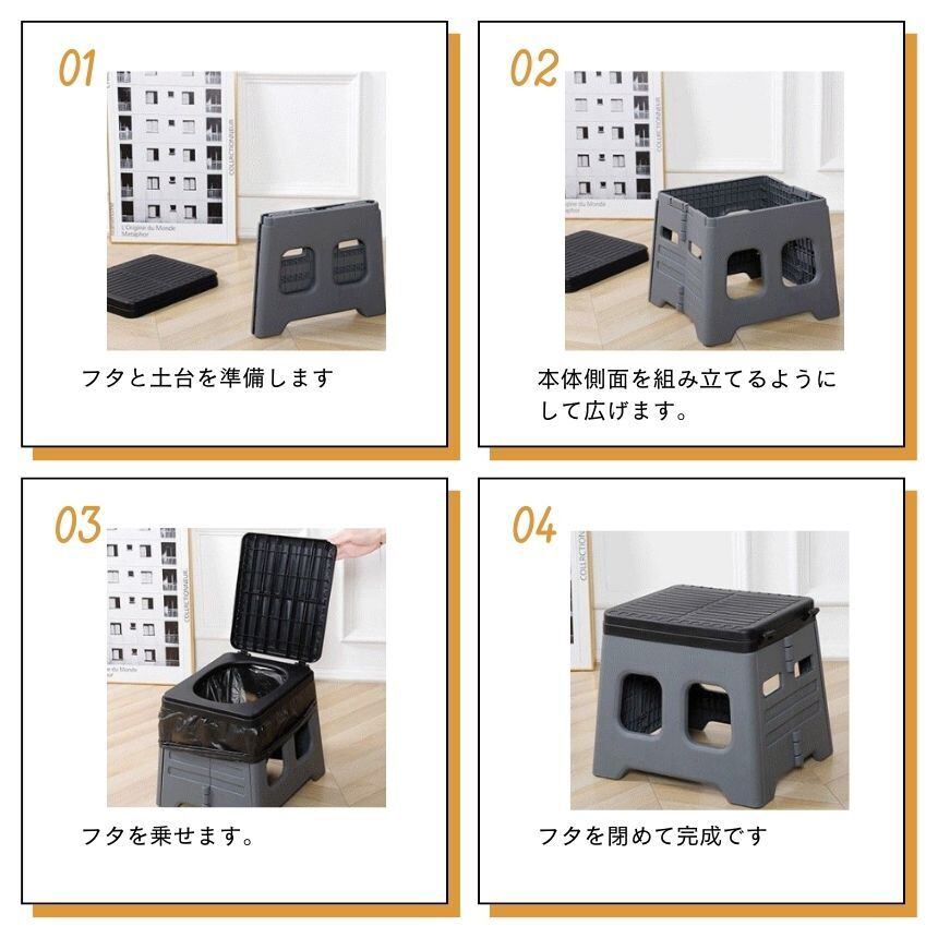 簡易トイレ 非常用トイレ ポータブルトイレ 簡易 折りたたみ 災害用 トイレ 災害用トイレ 防災 携帯トイレ 女性用 便座 大便 介護 踏み台 収納 ボックス 介護用 椅子 スツール チェア 車 緊急 防災 渋滞 ゴミ箱 ダストボックス 車載 ブラック グレー
