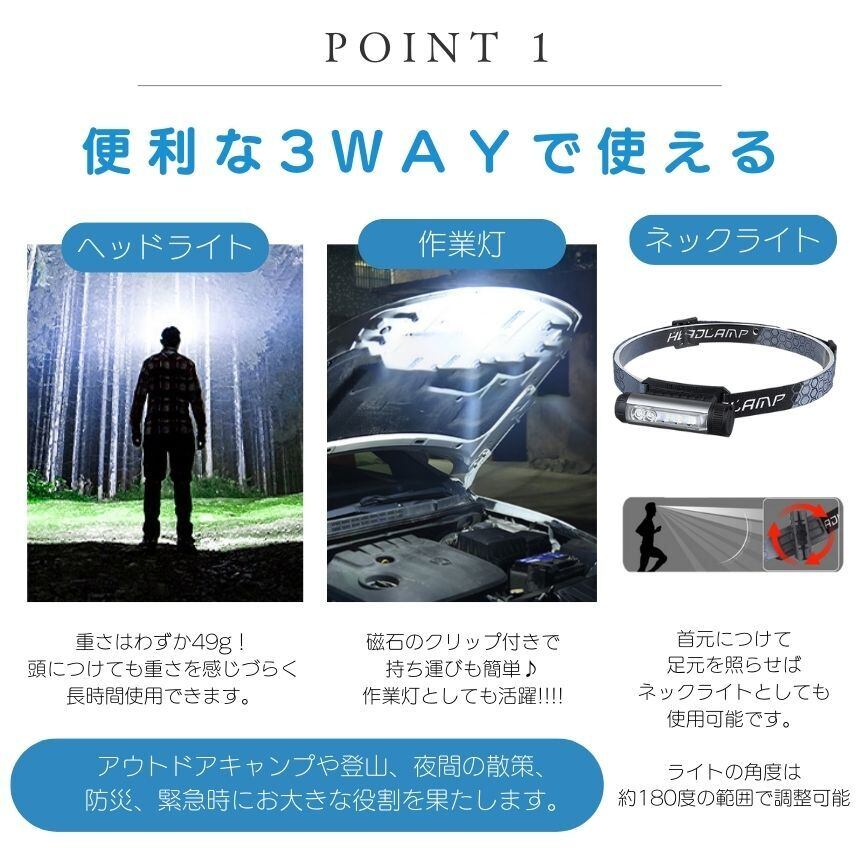 【分離して使える】 ヘッドライト 充電式 懐中電灯 ハンディライト ヘッドランプ led ライト 最強 ハンディ高輝度 クリップライト TYPE-C ハンドライト フラッシュライト 登山 釣り 作業 マグネット 磁石 小型 軽量 キャップ ウォーキング アウトドア キャンプ 夜間 防犯