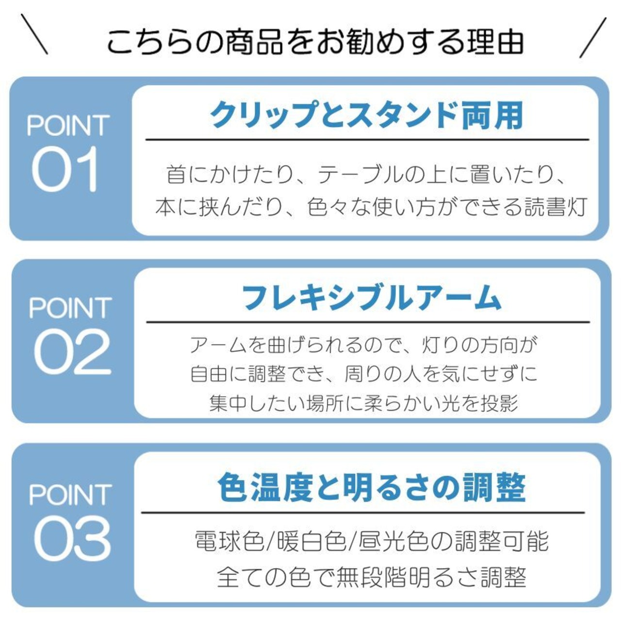 【 3色調光 & 明るさ調整 】 クリップライト 卓上ライト 読書ライト 読書灯 充電式 ブックライト デスクライト 読書 LED 手元ライト 小型 持ち運び 角度調整 フレキシブルアーム コードレス スタンド 軽量 折り畳み 仕事 勉強 子供 停電 防災 グッズ